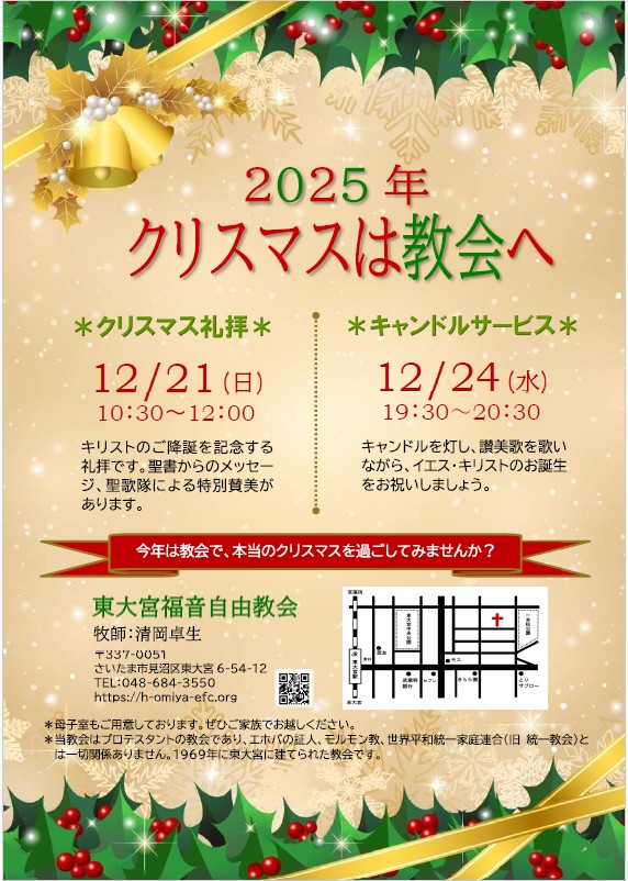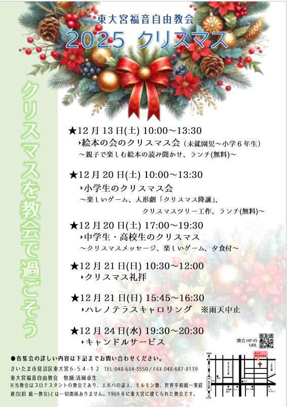 2025 クリスマスプログラム案内 投稿日 2025年11月16日 著者 h-omiya-efc カテゴリー お知らせ カテゴリー 集会案内 各画面をタップすると印刷用画面が表示されます。 総合案内 クリスマス礼拝とキャンドルサービス この記事を書いた人 h-omiya-efc 記事一覧